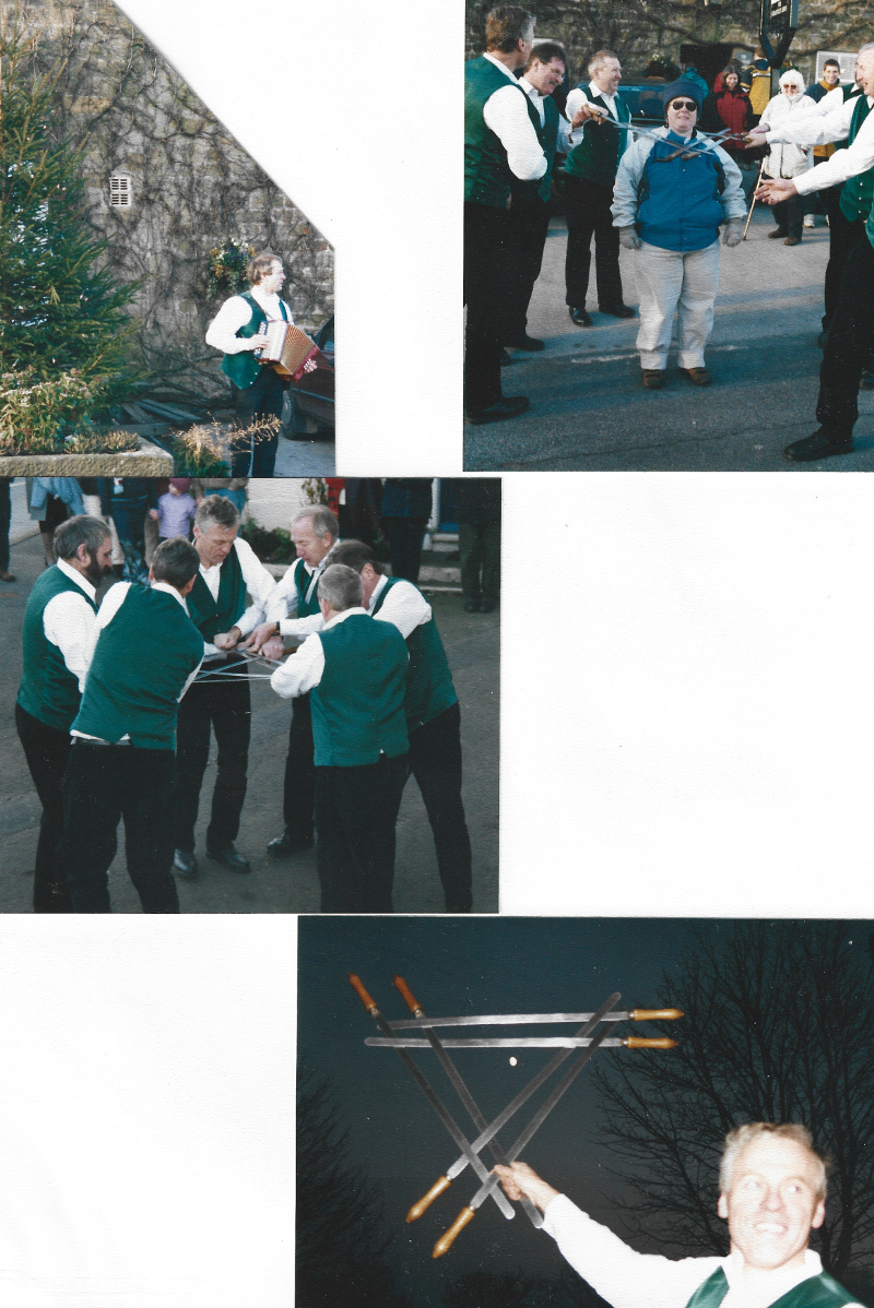 Boxing day was very cold this year with a biting wind. We met at the Grantley Arms as usual, the pub has changed hands in much cleaner and tidier but also much quieter. We danced outside to a reasonable crowd, mostly our friends but also including a couple from Ripon who come to watch every year. We moved on to the Queen's Arms in Kirkby for a swift half and danced at the Market Cross, not many in the audience this time. Half way through the dance. Half a dozen people came out to watch, one of whom wanted to learn to play the melodeon (he was from down South)!