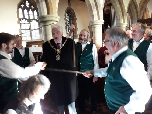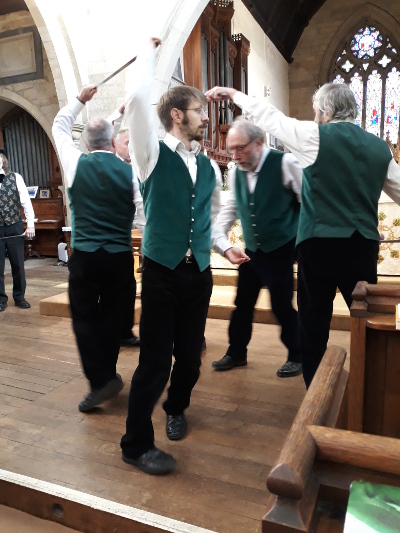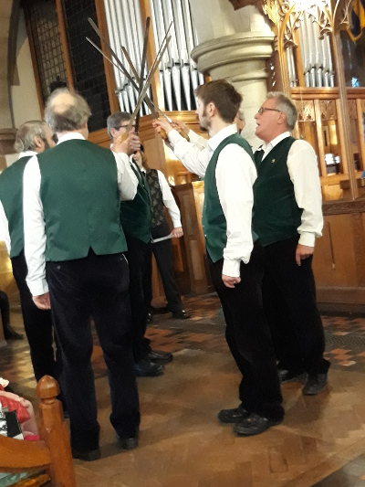 Couple of very minor hiccoughs in the dance. Keith led the dancers the wrong way, so number 1 was at the opposite end to usual. Another slight mistake in single over but the rest of the dance went well. Nice to see Geoff Hyde in the congregation.