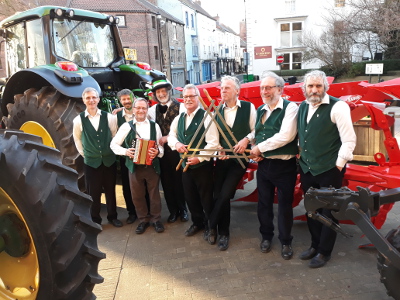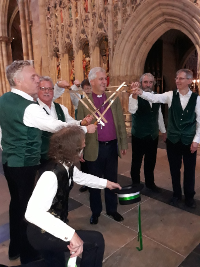 After a marvellous lunch at Colin's house and a grand tour of the property we went to Ripon Cathedral for their plough blessing. We danced just after 3 o'clock. It was a fairly mundane affair with a relatively small audience. Peter really had to belt the song out to be heard. Probably seemed tame after last year's endless photography session. Mr Bateman, the Mayor of Harrogate was in the audience and his wife asked if we could behead him properly this time! We actually chose a random clergyman who was a good sport about it all.