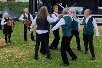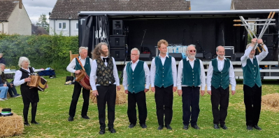 Kirkby Gala! We met at Andrew's house and practiced in his garden then wandered onto the playing field where a very noisy band were on the 'stage'. Their sound engineer was one Charlie Brown! (see 14th January 2024). We performed well and beheaded our friend Suzie Rice from Devon. There was quite a large, appreciative audience. Dancing on grass isn't ideal but it meant the crowd could sit on the surrounding straw bales.
