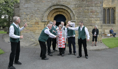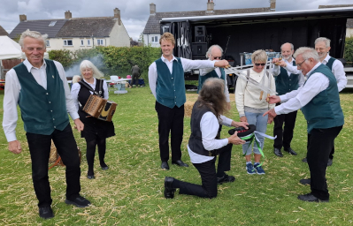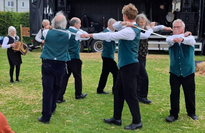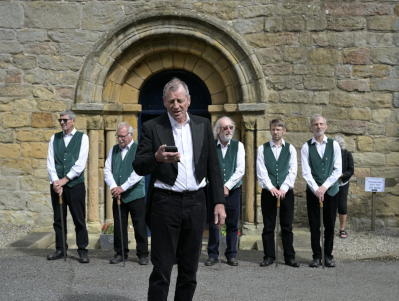 We'd been asked by Rachel Mountain, organiser of Masham Church's Yorkshire Day celebration, to dance at this event. We arrived to dance at 3pm as the event was winding down but still a goodly sized crowd. John's first outing as singer of the the Captain's Song. He had to have the words on his phone to remind him! We beheaded Rachel!